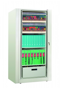 About Rotary Cabinet Storage Systems We offer innovative rotary cabinets that maximize space, optimize efficiency and increase security. Rotary cabinets are a sleek high density system that provides superior retrieval and file security. The rectangular cabinet has a four-sided storage cabinet on the interior that spins 360 degrees with a touch of a finger and doubles your storage space. Rotary cabinets can be configured to store any type of product or materials from binders to files to weapons to supplies.